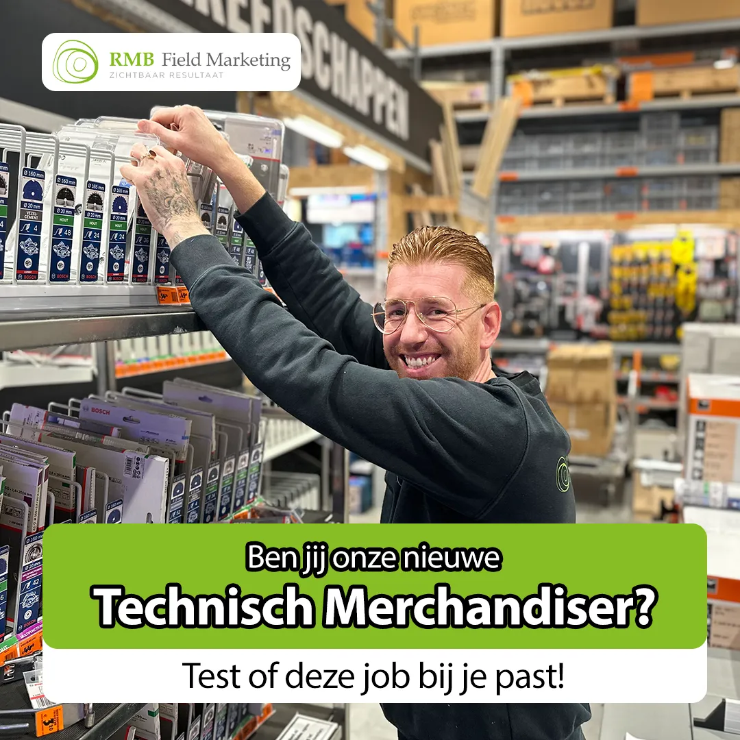 RMB Field Marketing is dé specialist in winkelbeleving. Wij zorgen ervoor dat A-merken in bouwmarkten en bij consumenten thuis opvallen en optimaal worden gepresenteerd. Als Technisch Merchandiser ben jij ons technische gezicht: jij zorgt dat producten goed zichtbaar zijn én correct geïnstalleerd worden — in de bouwmarkt, bij klanten thuis of in de tuin.